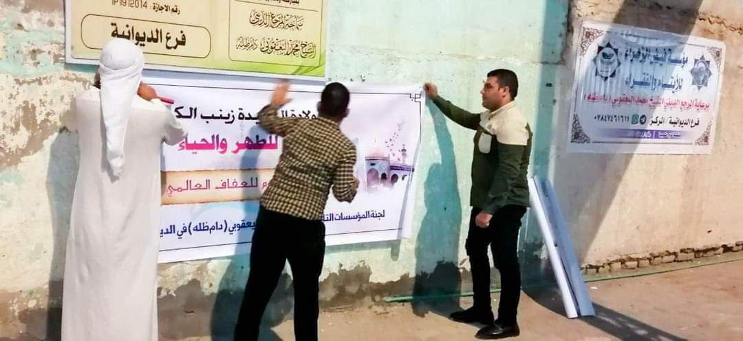 وذكر بيان للجنة، تلقت “النعيم نيوز” نسخة منه، أن “لجنة المؤسسات التابعة لمكتب سماحة المرجع الديني الشيخ محمد اليعقوبي في الديوانية، أحيت يوم العفاف العالمي الذي يصادف مولد السيدة زينب الكبرى (ع)، من خلال نشر البوسترات التي توضح أهمية يوم العفاف العالمي، في مركز محافظة الديوانية”.