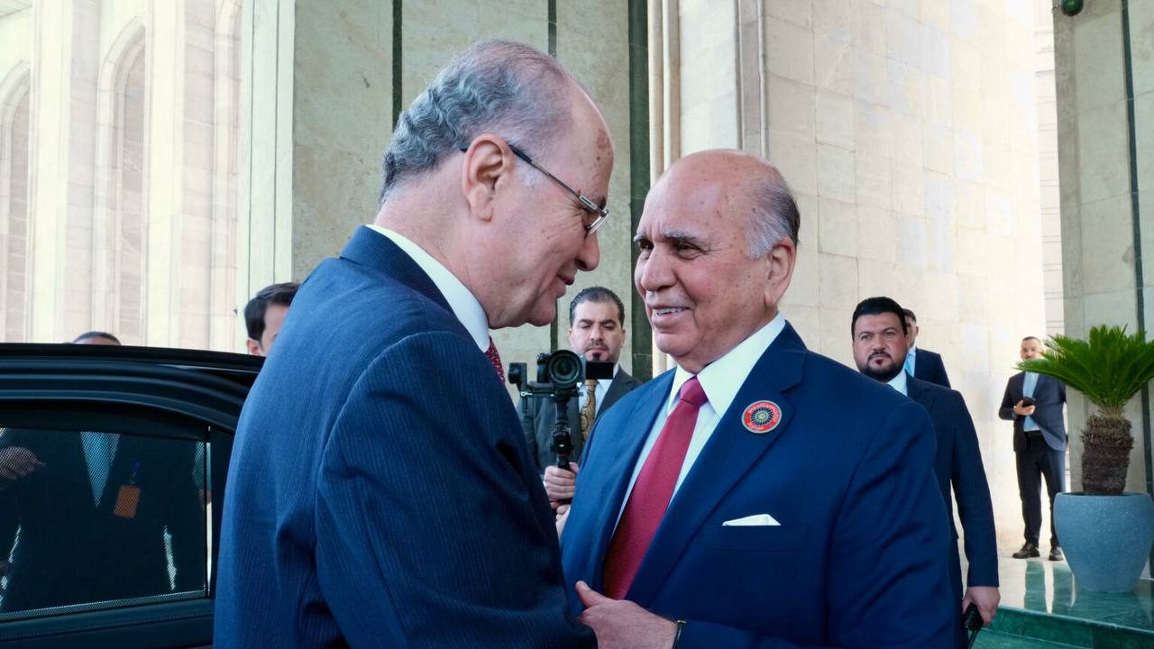 استقبل نائب رئيس مجلس الوزراء وزير الخارجية، فؤاد حسين، اليوم الخميس، رئيس مجلس الوزراء ووزير الخارجية الفلسطيني، محمد عبد الله مصطفى، بالقصر الحكومي في العاصمة بغداد.