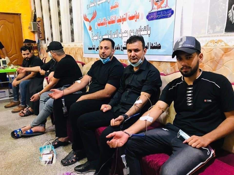 ولفتت المؤسسة، إلى أنه “تحت شعار (من كربلاء نستلهم معاني التضحية والعطاء) أقامت حملتها السنوية العاشرة للتبرع بالدم بالتعاون مع مصرف الدم الرئيسي في البصرة يوم السابع من محرم الحرام، وسط تفاعل كبير مع تغطية إعلامية جيدة (قناة الشرقية/قناة النعيم /إذاعة المربد)”.