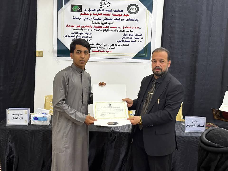 مؤسسة النخب للتربية والتعليم في البصرة تختتم فعاليات إحياء الأيام الجعفرية