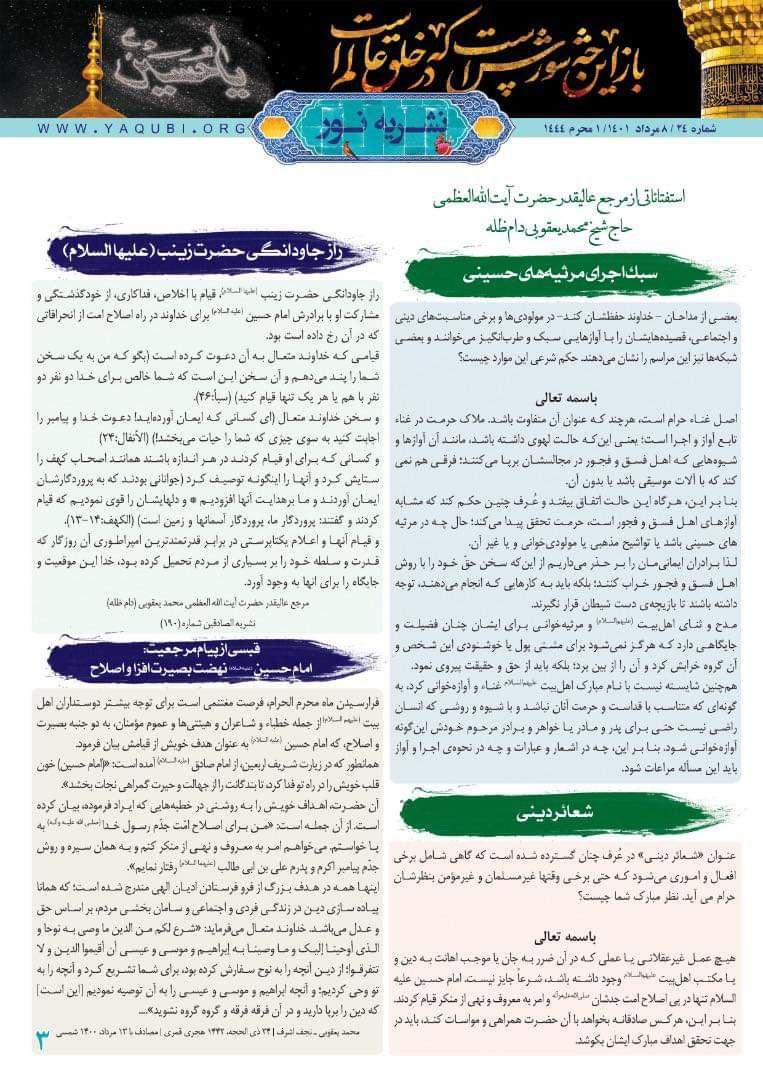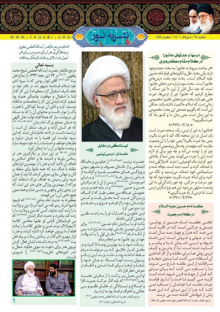 نشرة نور تختص بنشر فكر سماحة المرجع اليعقوبي حفظه الله و اخبار مكتبه في مدينة قم المقدسة باللغة الفارسية.