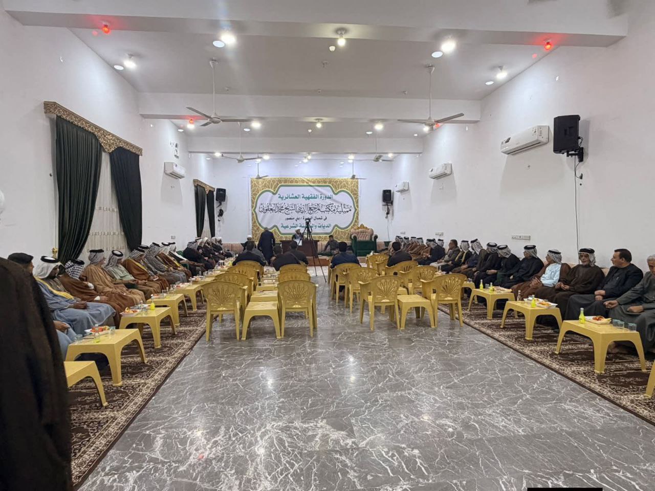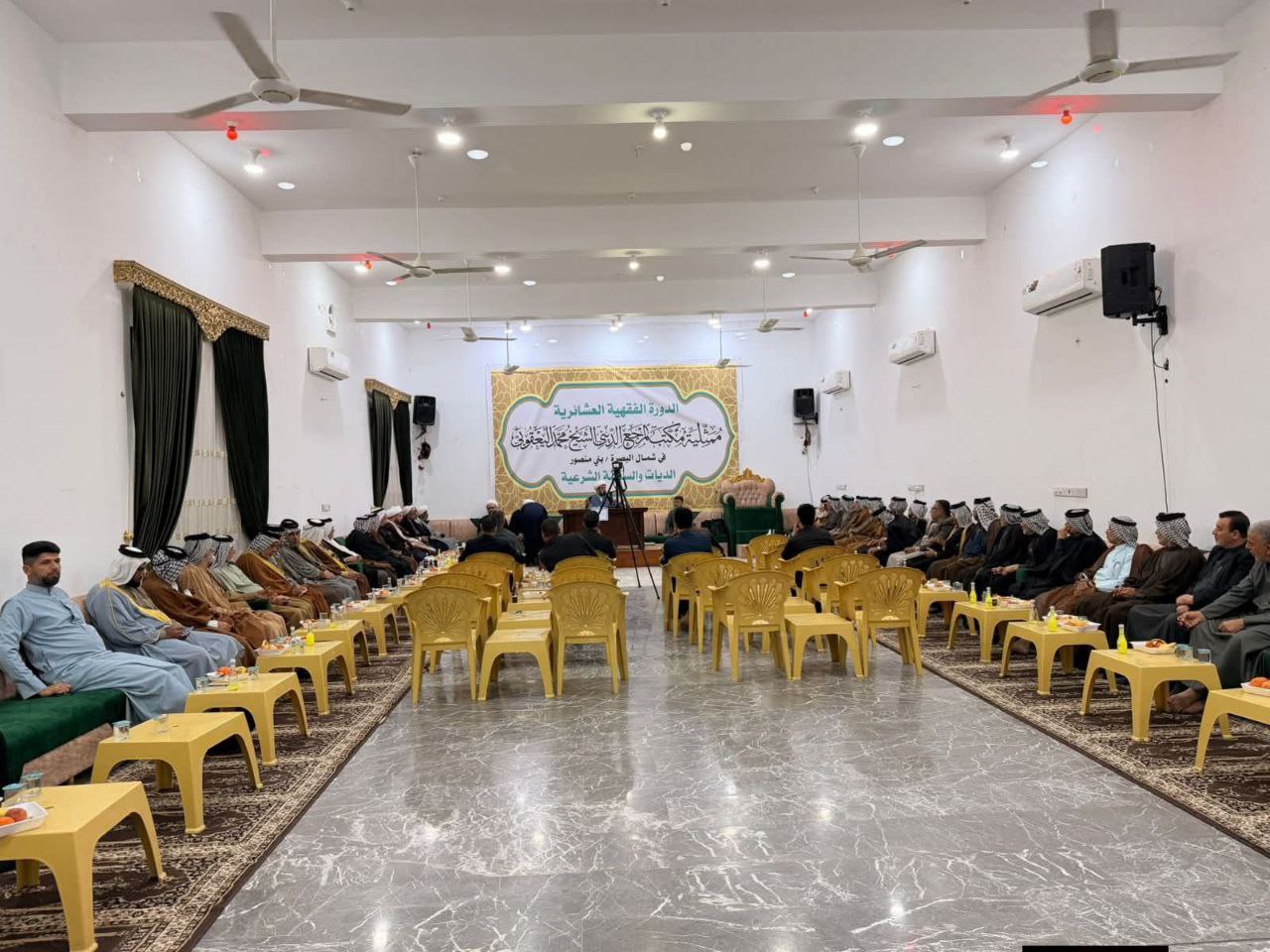 أقامت لجنة العلاقات والعشائر في مكتب سماحة المرجع الديني الشيخ محمد اليعقوبي في البصرة/ قضاء الصادق/ بني منصور دورةً فقهية عشائرية.