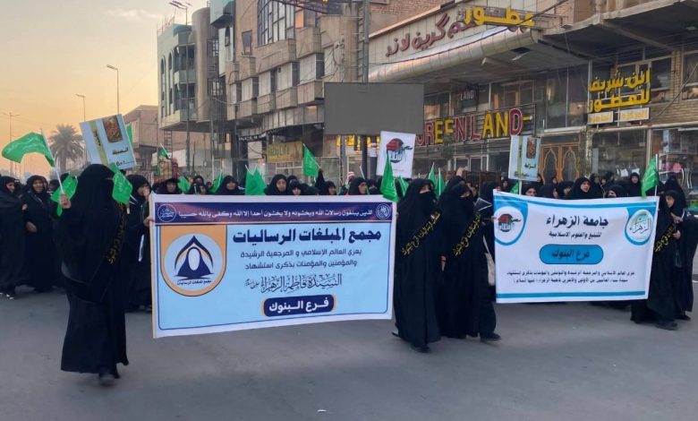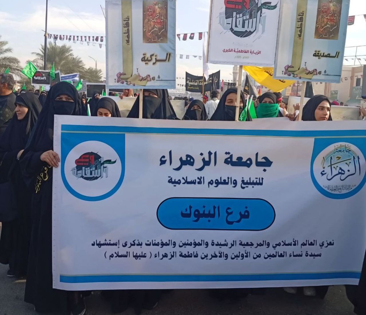 مجمع المبلغات الرساليات وجامعة الزهراء (ع) يشاركان بالتشييع الرمزي للسيدة فاطمة (ع) بالبنوك