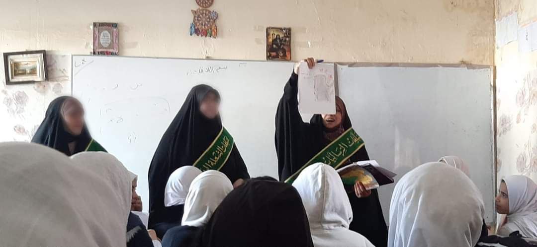 نظم مجمع المبلغات الرساليات في شعلة الصدرين زيارة لإحدى المدارس المتوسطة للبنات في مدينة بغداد الكرخ.