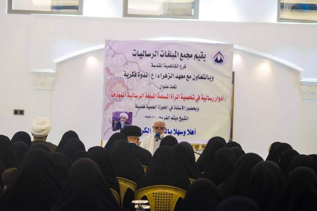وذكر بيان لمجمع المبلغات، تلقت “النعيم نيوز” نسخة منه، أن “مجمع المبلغات الرساليات في الكاظمية المقدسة، نظم في قاعة الفرقان ندوة فكرية بعنوان (أدوار رسالية في شخصية المرأة المسلمة، المبلغة الرسالية إنموذجاً)، حاضر فيها الأستاذ في الحوزة العلمية الشيخ ميثم الفريجي، بمشاركة فضلاء الحوزة العلمية ومبلغات وطالبات معاهد الزهراء فرع (سبع البور، العبيدي، الدوانم، الكاظمية)”.