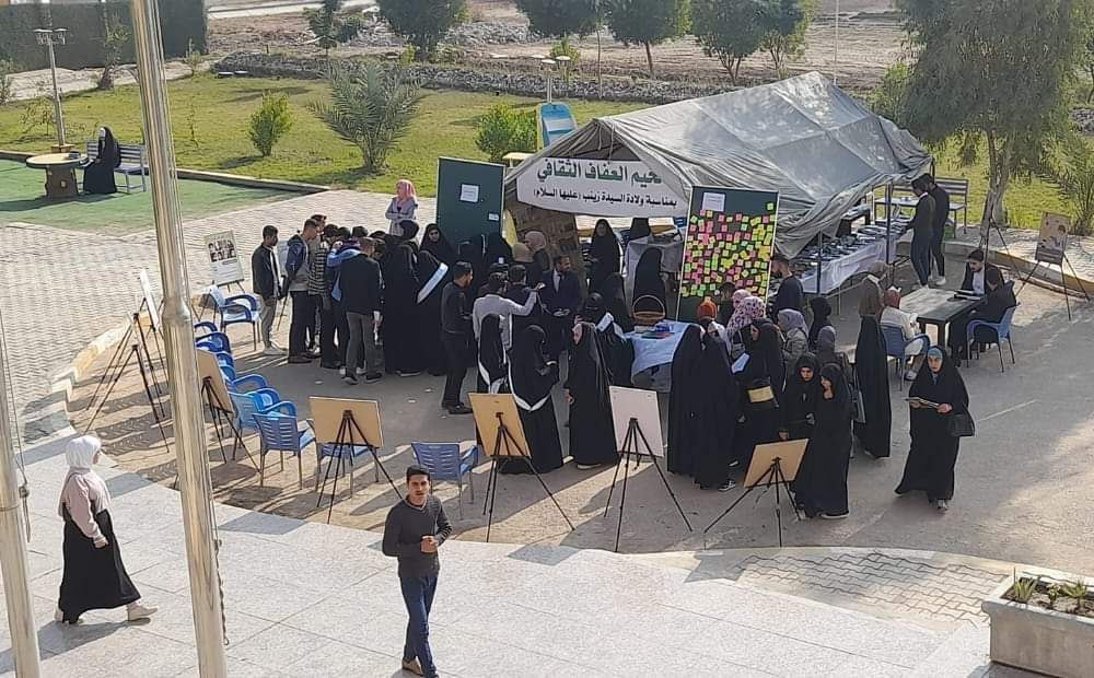 نظم مجمع المبلغات الرساليات في كربلاء المقدسة فعاليات مخيم العفاف الثقافي بمناسبة ذكرى ولادة السيدة زينب ع يوم العفاف العالمي في جامعة كربلاء كلية العلوم الإسلامية.