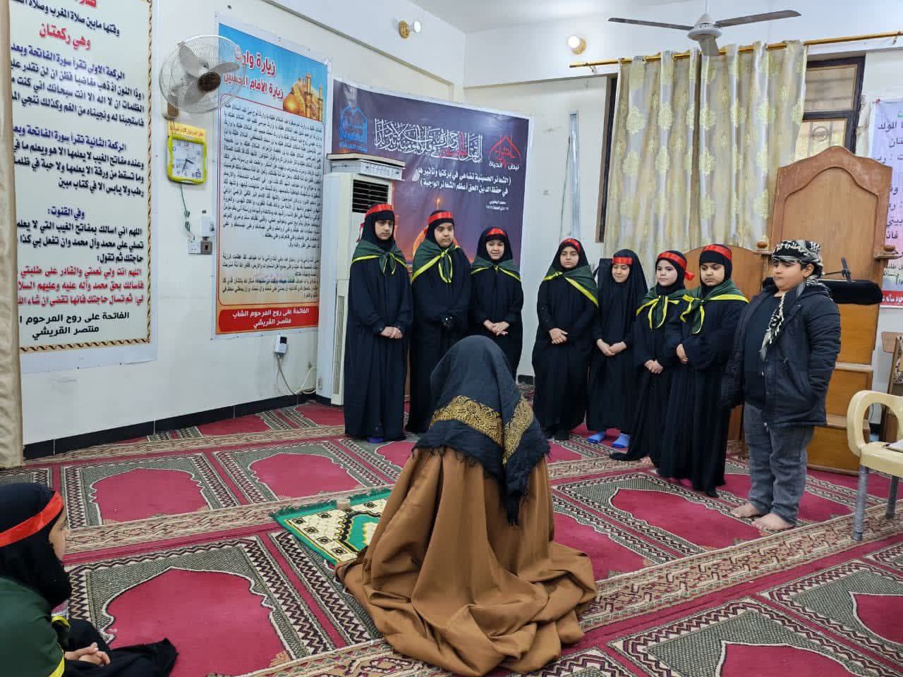 وذكر مجمع المبلغات، في بيان تلقت “النعيم نيوز” نسخة منه، أن “فقرات نشاط الكشافة بعد مقدمة تعريفية عن الإمام الكاظم (ع) للمبلغة (نغم نوري)”، مضيفاً أنه “بدأنا مجلسنا بقراءة القرآن الكريم لطالبة من (فوج السيدة الزهراء (ع))، فقرة دعاء الإمام الكاظم (ع) للتخلص من السجن ولقضاء الحوائج قدمته طالبة من فوج (بطلة كربلاء)، فقرة أسئلة وأجوبة بطريقه تمثيلية قدمه فوج (سيد الشهداء (ع))”.