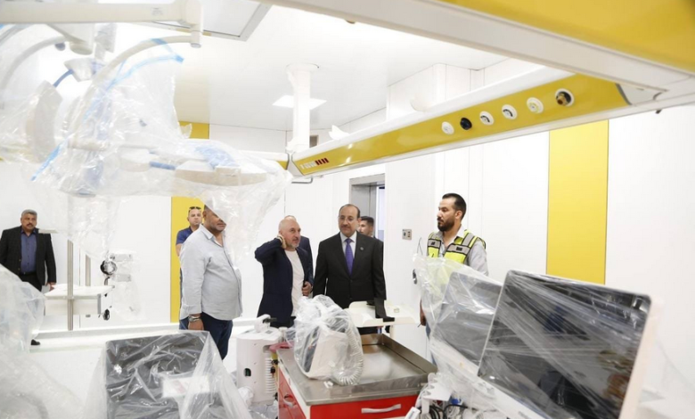وذكر، أن “المستشفى يحتوي كذلك على أحدث وحدات التشخيص والتصوير ومختبر القسطرة ومركز التبرع بالدم ووحدات التنظير وإعادة التأهيل والصيدلية المركزية والتعقيم والمشرحة الحديثة التي تضم 35 حاملة جثث، إلى جانب قاعة مؤتمرات تتسع لـ130 شخصاً، ومكتبة طبية، ووحدات لمعالجة النفايات الطبية والطاقة والمستودعات المركزية”، موضحاً، أن “المشروع يتضمن سكناً متكاملاً للملاكات الطبية والإدارية بواقع (76) سويت للأطباء مزود بجميع الخدمات؛ لضمان بيئة عمل مستقرة ومريحة”.