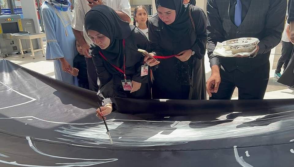 وأشار، إلى أن “الوفد الإعلامي جاء براية سوداء متبرك بها عند ضريح الإمام الحسين (عليه السلام). إلى إسطنبول”، مبيّناً أن “الراية بقياس (6*3) تتوسطها عبارة (يا حسين) مفرغة. تم وضعها في قاعة خاصة وأتيح للمواطنين المشاركة بملئها”.