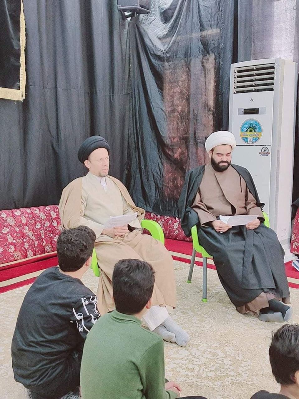 1-اللجنة المشرفة على المسابقة السيد ثائر الموسوي، الشيخ جسام العتابي قسم الأشبال، لفريقين في المسابقة.