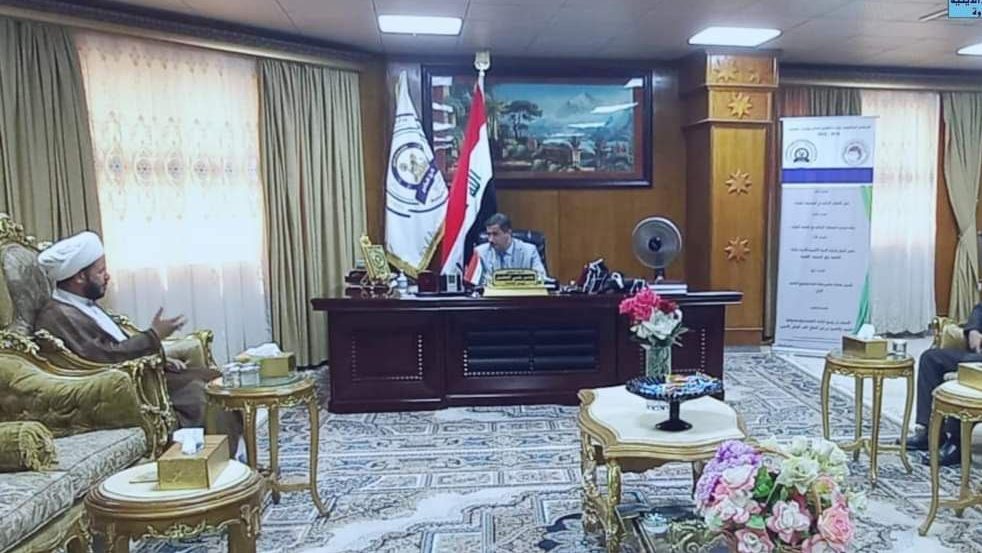مدير جامعة باقر العلوم يزور جامعة المثنى والمعهد التقني ويهديهم موسوعة أرشيف نشرة الصادقين