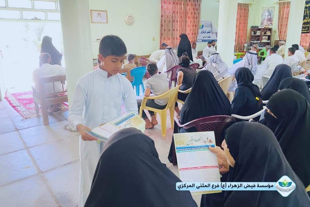 مدير مؤسسة فيض الزهراء المثنى يزور مكتب المؤسسة في ناحية الدراجي ويحضر توزيع المستحقات الشهرية للعوائل الكريمة