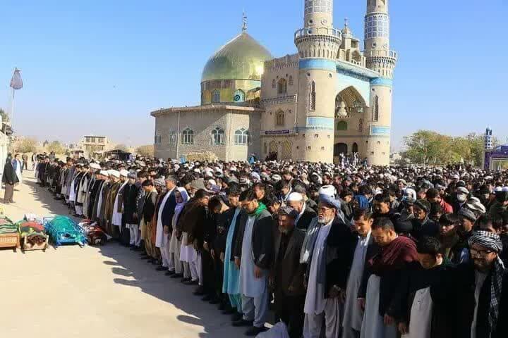 شيع حشد غفير من أهالي مدينة هرات في أفغانستان، اليوم الثلاثاء، جثامين شهداء الهجوم الإرهابي، الذي شنه مسلحون مجهولون يوم الجمعة الفائت.