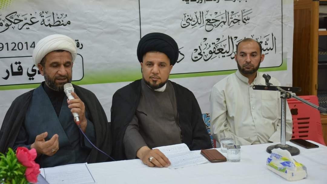 وذكر المركز، في بيان تلقت “النعيم نيوز” نسخة منه، أنه “أقام وبالتعاون مع مكتب سماحة المرجع الديني آية الله العظمى الشيخ محمد اليعقوبي (دام ظله) في ذي قار. لقائه الشهري مع مجموعة من الشباب المؤمنين المقبلين على الزواج. والمتزوجين الجدد”.