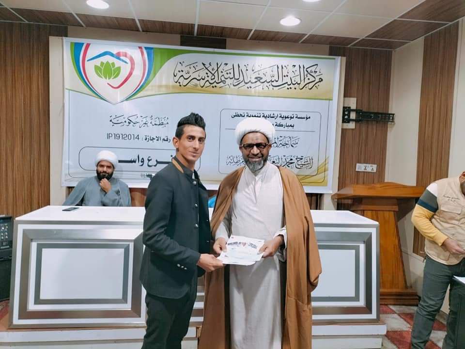 وأضاف، أن “مركز البيت السعيد في واسط، استضاف الشيخ عماد العزاوي، مدير حوزة الإمام الرضا (عليه السلام) في الكوت. الذي تناول في محاضرته حقوق الزوج اتجاه الشريك الآخر، معرفاً بمعنى السعادة. مجيباً على سؤال كيف تكون سعيداً. كما تحدث عن نشاطات المركز التي تستهدف فيها شريحة الشباب”.