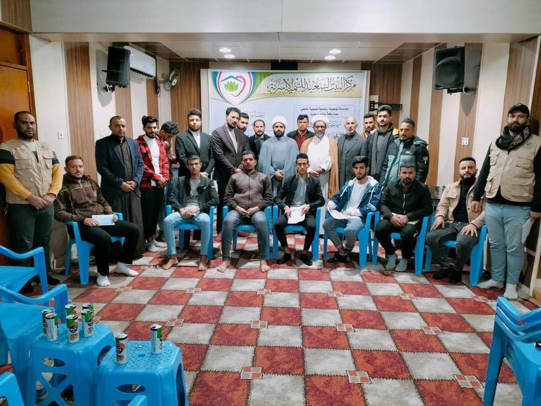 وتابع البيان، “كما قامت المبلغة أم إبراهيم، بإلقاء محاضرة نسوية على شريحة النساء، تم من خلالها سماع بعض المشاكل من المتزوجين الجدد. ووضع الحلول لها وكيفية التعامل معها”، مشيراً إلى أن “المحفل اختتم بتوزيع منحة مالية هدية من المركز لسماحة المرجع الشيخ اليعقوبي (دام ظله). وبعض الكتيبات التي تخص حياة زوجية سعيدة”.