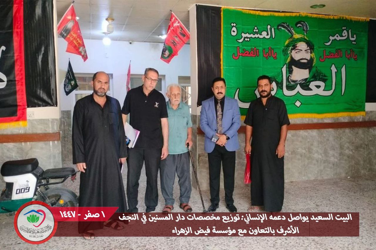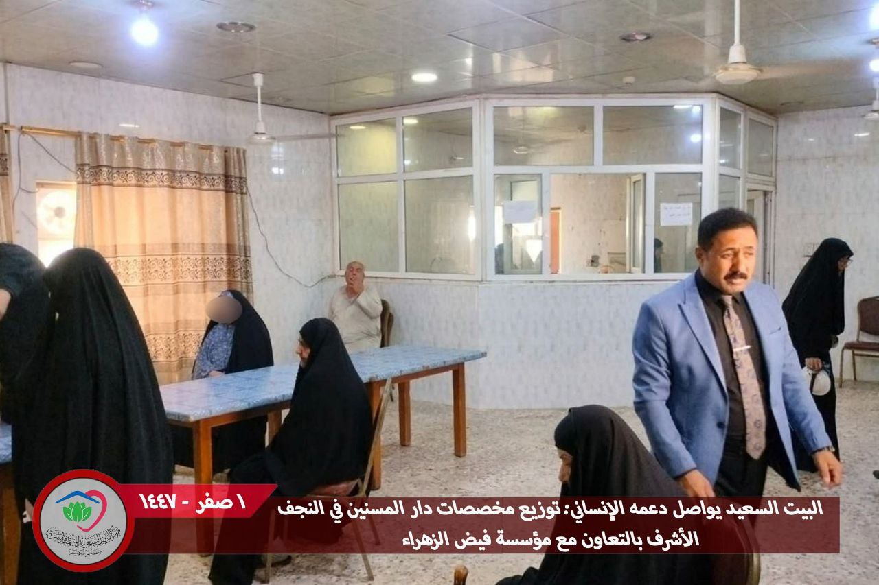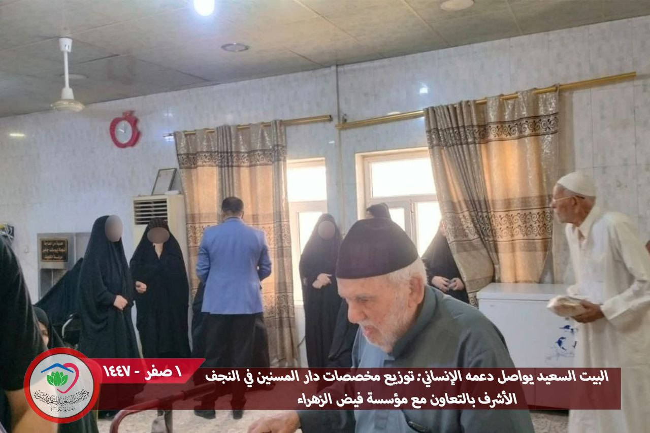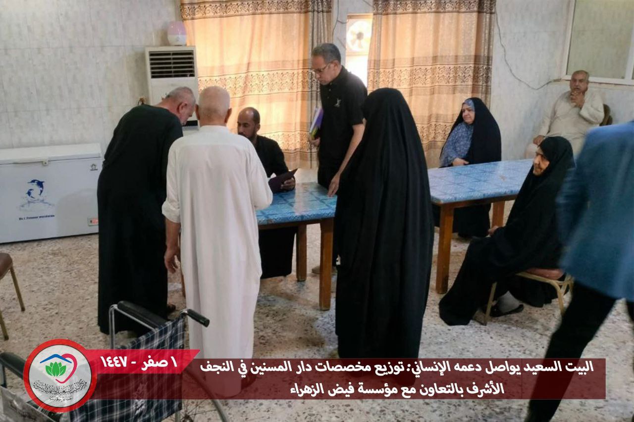 اعلن مركز البيت السعيد للتنمية الأسرية في محافظة النجف الأشرف، اليوم الاربعاء، توزيع المخصّصات الشهرية على نزلاء دار المسنين، وذلك نيابةً عن مؤسسة فيض الزهراء (عليها السلام)، وبرعايةٍ كريمة من سماحة المرجع الديني الشيخ محمد اليعقوبي.