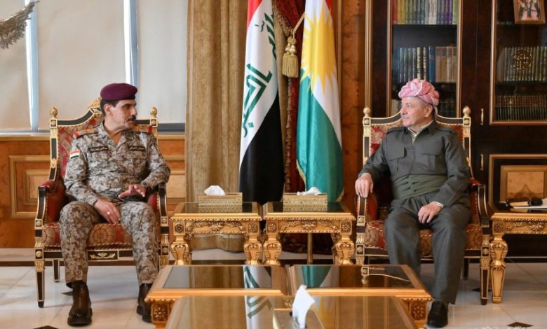 وبحث الجانبان خلال اللقاء، بحسب بيان لمكتب بارازاني، “العلاقات بين الجيش العراقي وقوات البيشمركة، وسبل تعزيز التنسيق الأمني في المناطق الحدودية بين العراق وسوريا، إضافة إلى دعم جهود حماية أمن واستقرار البلاد”.