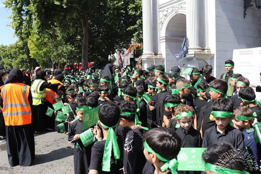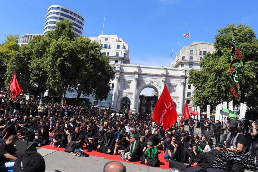 وسط العاصمة البريطانية لندن في العاشر من شهر محرم تجمهرت الحشود المعزية في ساحة لتستذكر واقعة الطف الخالدة واليوم الذي أستشهد به أبي عبد الله الحسين وأولاده وأصحابه (ع).