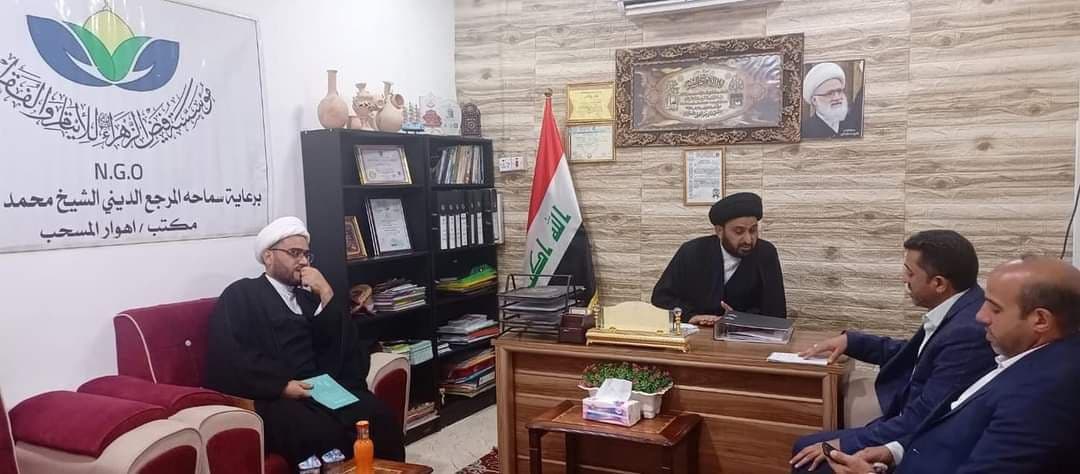 استقبل مدير مكتب الأهوار السيد حسين ابو طبيخ الامين، اليوم الجمعة، العام لمؤسسة فيض الزهراء (ع) السيد محمد الموسوي والوفد المرفق له.