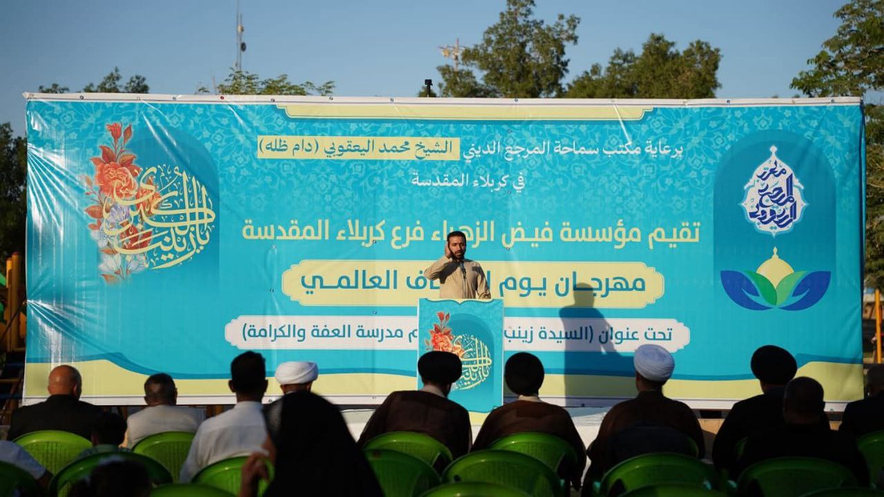وذكر بيان لمكتب المرجعية، تلقت “النعيم نيوز” نسخة منه، أنه “بمناسبة ذكرى ولادة السيدة زينب (ع) واليوم العالمي للعفاف، أقام مكتب سماحة المرجع الديني الشيخ محمد اليعقوبي في كربلاء المقدسة، مهرجاناً مميزاً نظمته مؤسسة فيض الزهراء فرع كربلاء المقدسة”.