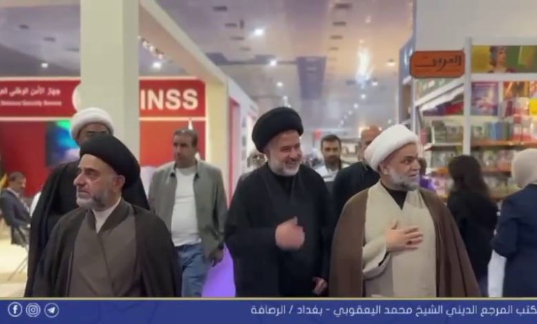 واطلع السيد العلاق خلال جولته، بحسب بيان للمكتب تلقت “النعيم نيوز” نسخة منه، على “عدد من أجنحة دور النشر والمراكز الثقافية، وفي مقدمتها جناح دار الصادقين للطباعة والنشر المخصص لعرض مؤلفات المرجع الديني الشيخ محمد اليعقوبي (دام ظله) والصادر من النجف الأشرف، حيث وقف الوفد على أبرز الإصدارات الفكرية والفقهية والتربوية التي توثق منهج المرجعية وتثري الساحة العلمية”.