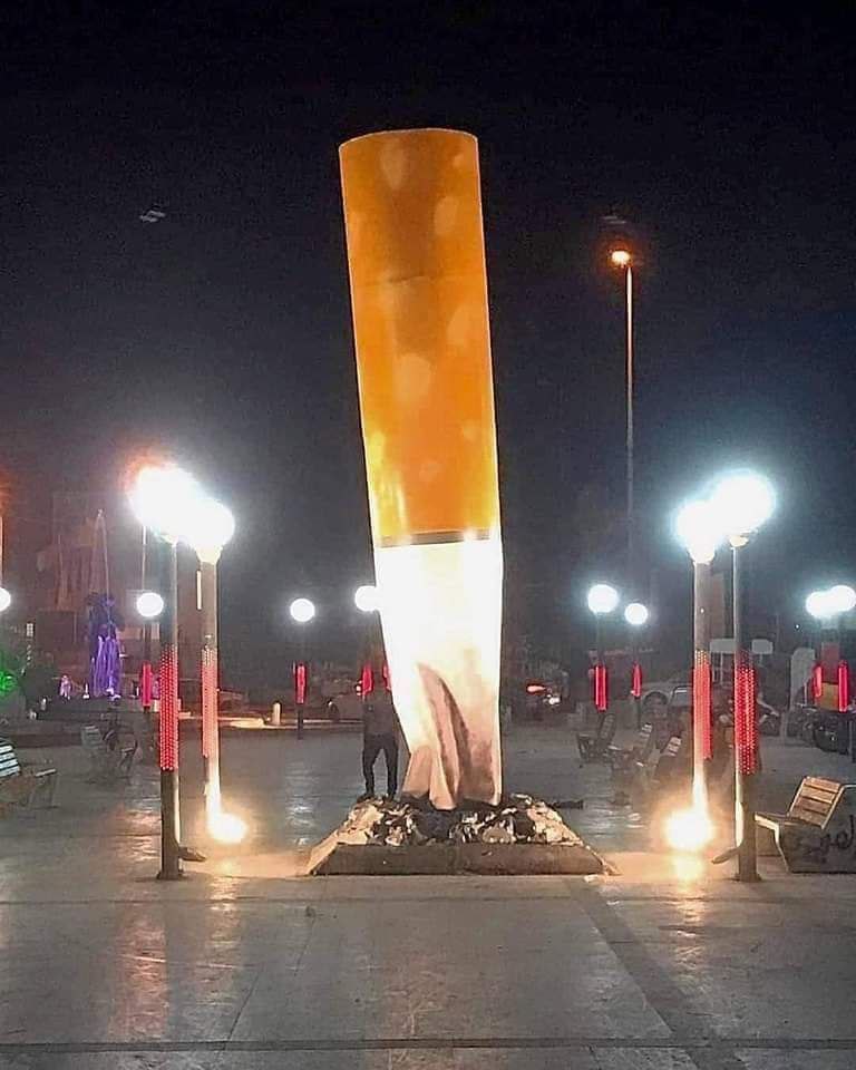 من جانبه أوضح الفنان التشكيلي منتظر الشباني ان الهدف من النصب هو التوعية والتحذير من مخاطر التدخين بالإضافة إلى رمزية الحفاظ على البيئة والنظافة من أعقاب السجائر، مبيناً ان هذا النصب تم انشاؤه بعلم واشراف نقابة الفنانين العراقيين فرع الديوانية، وعلى نفقتي الخاصة، مبيناً انه لم تدعمني جهة حكومية او اهلية في انشاء هذا العمل.