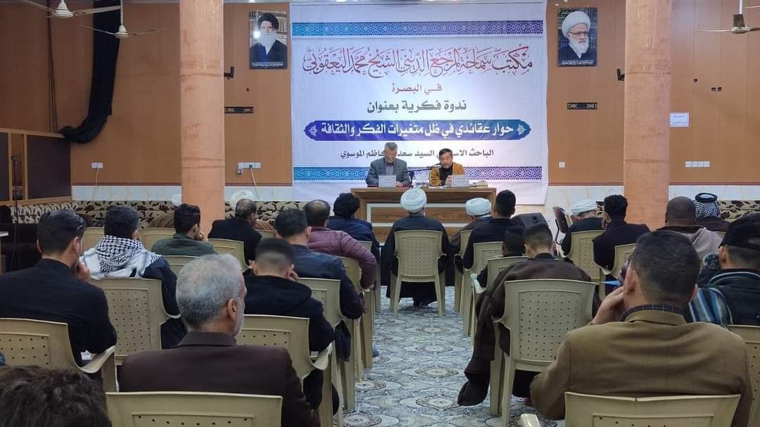 وذكر بيان لمكتب المرجعية، تلقت “النعيم نيوز” نسخة منه، أنه “برعاية مكتب سماحة المرجع الديني الشيخ محمد اليعقوبي (دام ظله) في البصرة. أقامت اللجنة الثقافية الندوة الفكرية الحوارية الأولى تحت عنوان “حوار عقائدي في ظل متغيرات الفكر والثقافة”. بمشاركة الباحث الإسلامي السيد سعدي الموسوي، وإدارة عادل الشاهين، في حسينية الإمامين العسكريين بمنطقة الجمعيات، بحضور نخبة من الفضلاء والرساليين“.