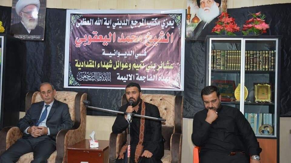 مكتب المرجع اليعقوبي في الديوانية يقيم مجلس عزاء على أرواح شهداء مجزرة المقدادية