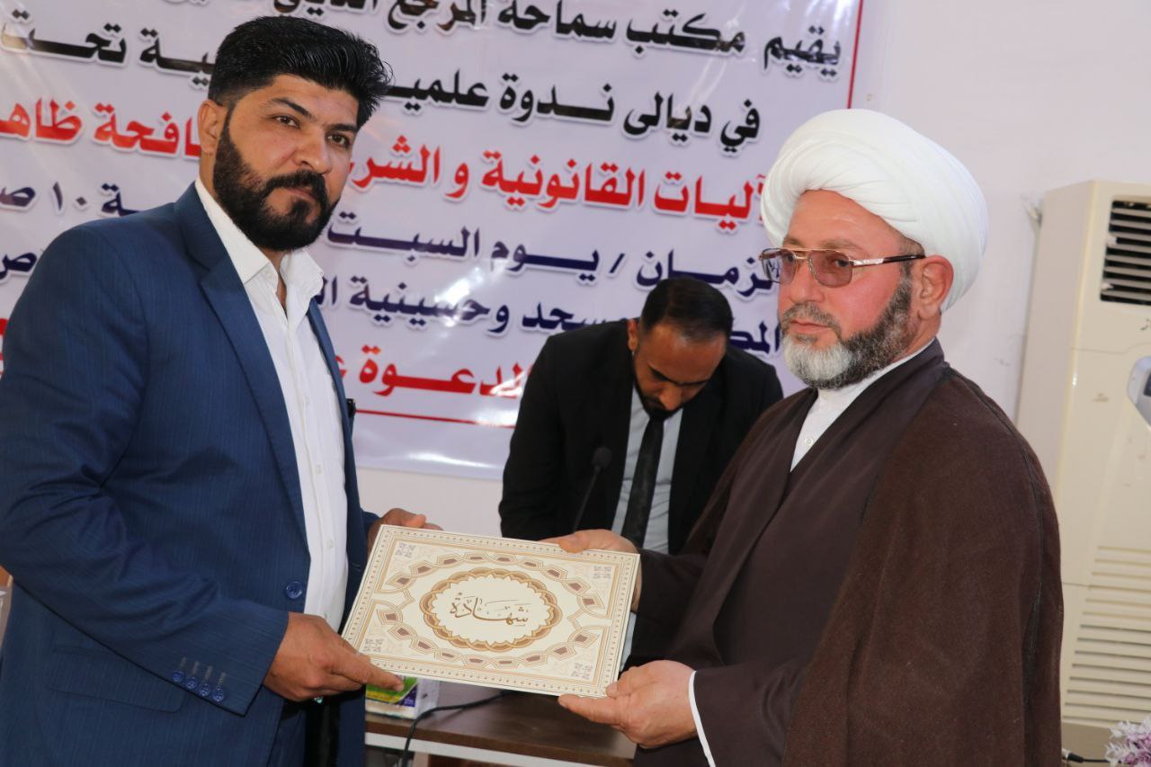 وفي نهاية الندوة تم تكريم بعض الحاضرين بشهادات شكر وتقدير من قبل مكتب المرجعية في ديالى.