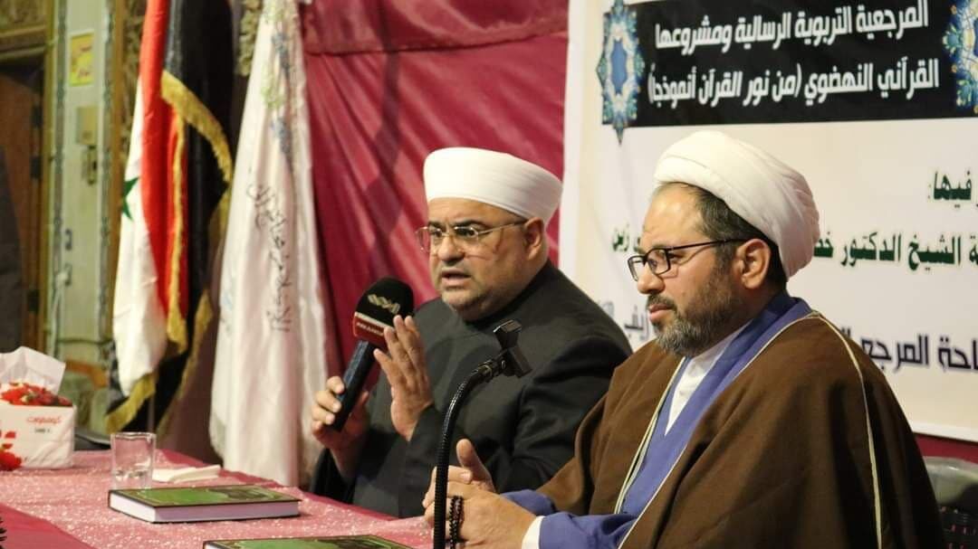وذكر مكتب المرجع اليعقوبي، في بيان تلقت “النعيم نيوز” نسخة منه، أن “الندوة كانت تحت عنوان: (المرجعية التربوية الرسالية ومشروعها القرآني النهضوي “من نور القرآن أنموذجاً”)، حاضر فيها كل من الشيخ الدكتور خضر شحرور/مدير أوقاف ريف دمشق، والشيخ علي زين/أستاذ في الحوزة العلمية“.