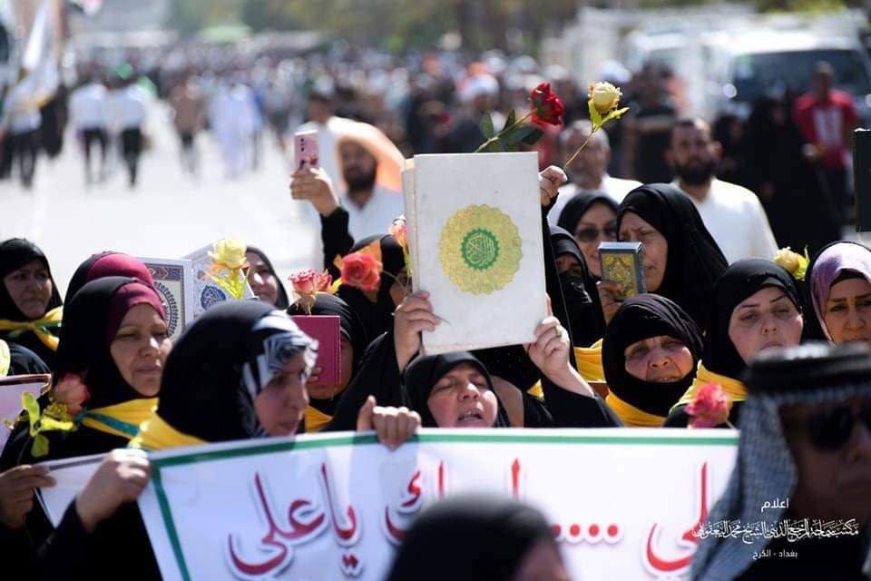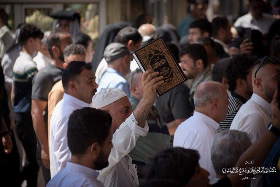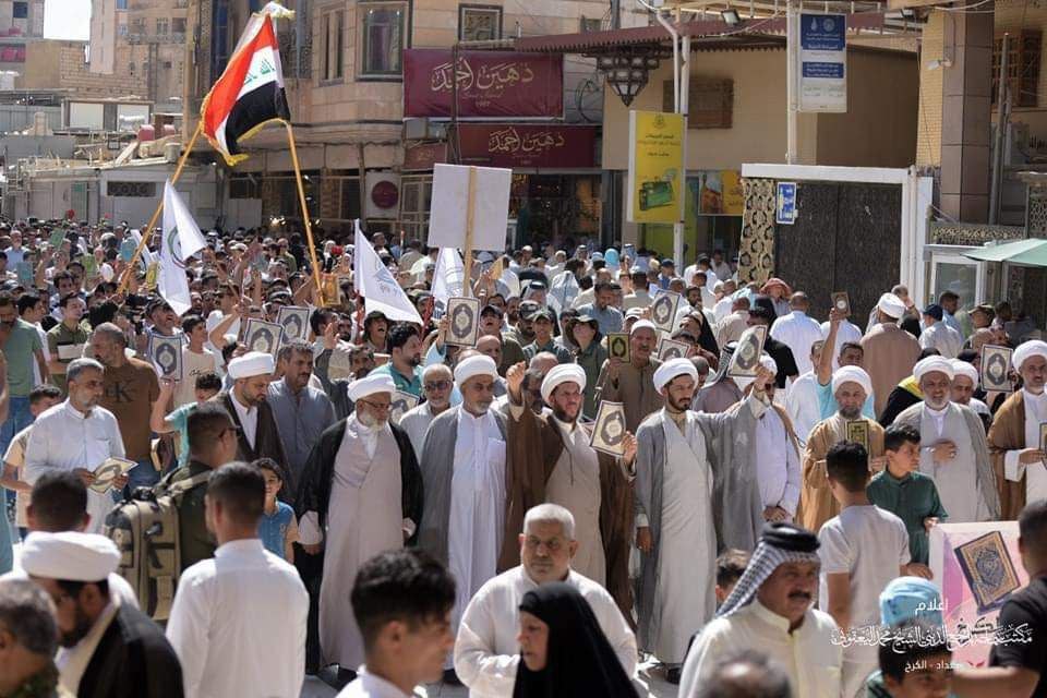 وأوضح، أن “المسيرة انطلقت من ساحة ثورة العشرين وصولاً إلى المرقد الطاهر، وشارك فيها جمع من فضلاء الحوزة العلمية وعدد كبير من المؤمنين والمؤمنات، من مختلف مناطق الكرخ”، مضيفاً أن “المسيرة تضمنت رفع القرآن الكريم، وترديد هتاف (نعم نعم للقرآن) نصرةً له ودفاعاً عنه، واستنكاراً للاعتداء عليه”.