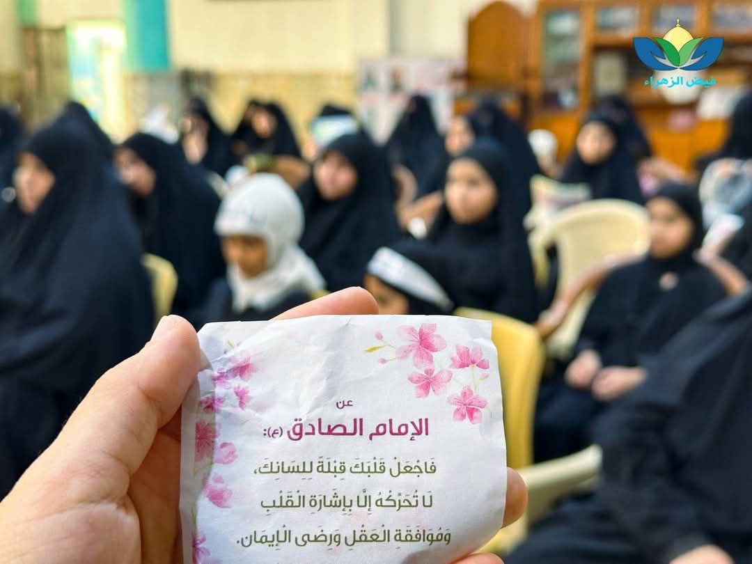 وأضاف، أن “المجلس تضمن طرح مسائل فقهية ابتلائية مستوحاة من فقه الإمام الصادق (ع)، قدمتها الأستاذة أم أوس، ليتعرف الحاضرون على علوم الإمام الغزيرة”، مشيراً إلى أنه “كما شهد المجلس، فقرة لتلاوة أحاديث شريفة عن الإمام الصادق (ع)، شاركت فيها الطالبات القارئات: رقية حسين، وبنين حسن، ورقية ميثم”.