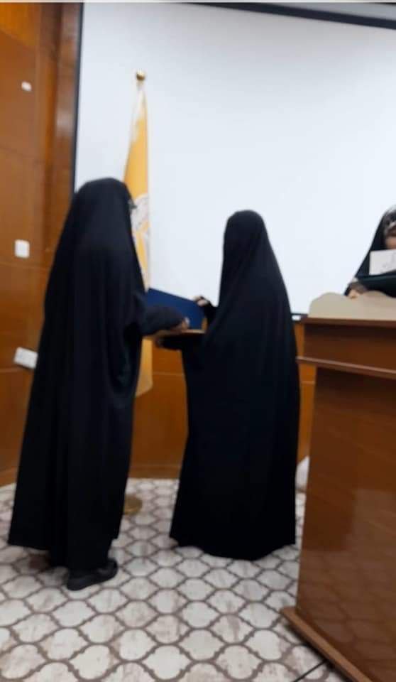 وفي ختام المهرجان تم تكريم الطالبات اللواتي التزمن الحشمة و العفة بارتدائن العباءة الزينبية المباركة .. بحدود ٤١ طالبة ..