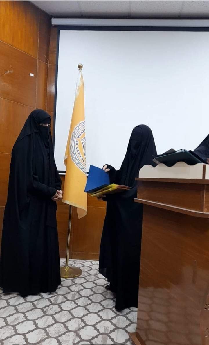 وأضاف “كما وقامت إحدى طالبات الصيدلة في المرحلة الخامسة بمشاركة الحضور تجربتها بذكر التحديات التي واجهتها بالتزامها العباءة خلال مسيرتها الجامعية”.