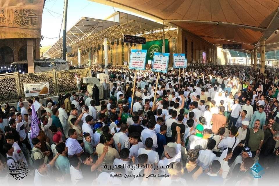 أعلنت مؤسسة ملتقى العلم والدين الثقافية في العراق، اليوم الخميس، عن تنظيم المسيرة الغديرية الطلابية في محافظة النجف الأشرف.