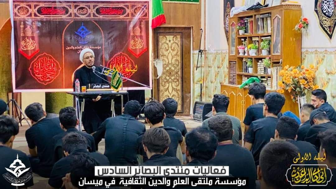 أقامت مؤسسة ملتقى العلم والدين الثقافية في ميسان فعاليات منتدى البصائر السادس لمناسبة شهادة الإمام السجاد (ع) في جامع الإمام الحسن (ع)