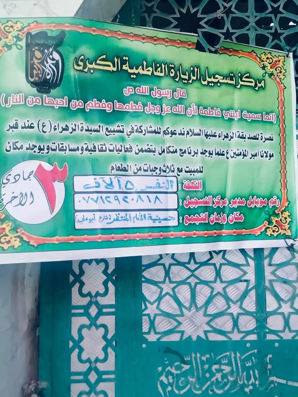 وذكرت ممثلية الرصافة الثانية، في بيان تلقت “النعيم نيوز” نسخة منه، أنه “تواصل المؤسسات والروابط الدينية التابعة لممثلية الرصافة الثانية في بغداد، استقبالها وتسجيلها للزائرين الراغبين بالتوجه إلى مدينة النجف الأشرف، للمشاركة في إحياء ذكرى استشهاد الصديقة الطاهرة فاطمة الزهراء (ع)، وتأدية مراسم التشييع الرمزي لنعشها الطاهر عند مرقد أمير المؤمنين علي بن أبي طالب (ع)”.