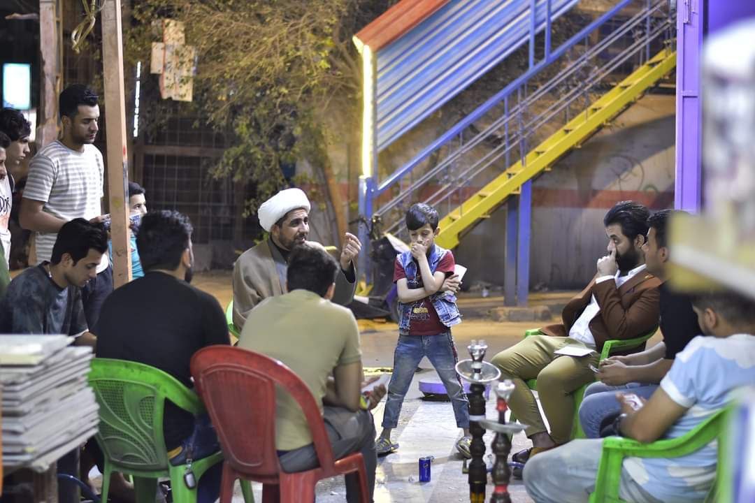 وذكرت الممثلية، في بيان تلقت “النعيم نيوز” نسخة منه، أنه “حضر الشيخ حيدر الأزيرجاوي في مقاهي بغداد/منطقة حي الزهراء، ليؤدي دوره في تبليغ أحكام الله والتحرك الميداني لمعرفة هموم الناس، وما يدور في أذهانهم وإجابة أسئلتهم”.