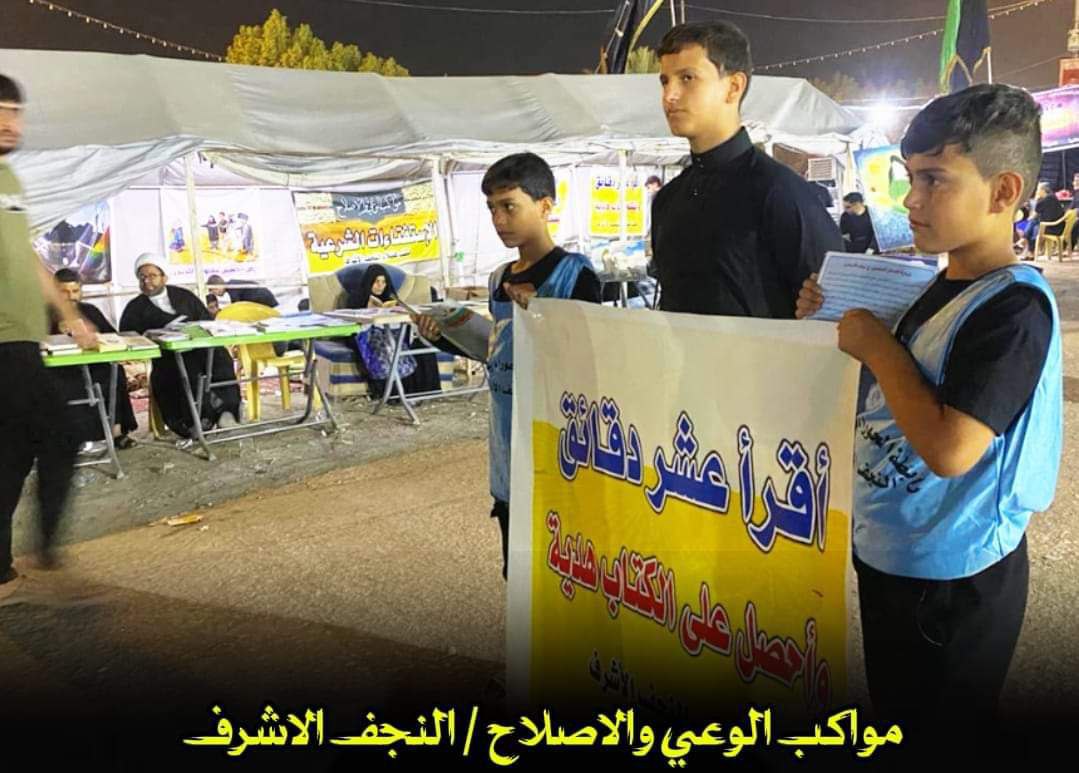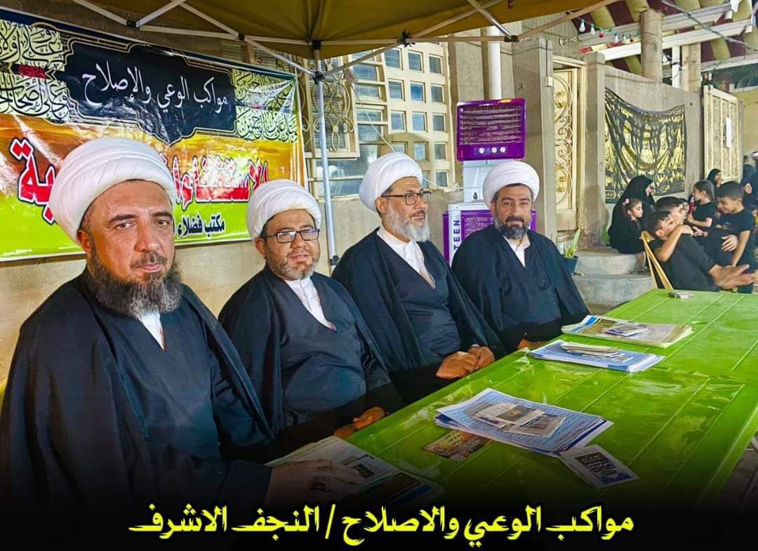مواكب الوعي والإصلاح الحسيني في النجف تستمر بتقديم خدمتها التوعوية والإرشادية للزائرين