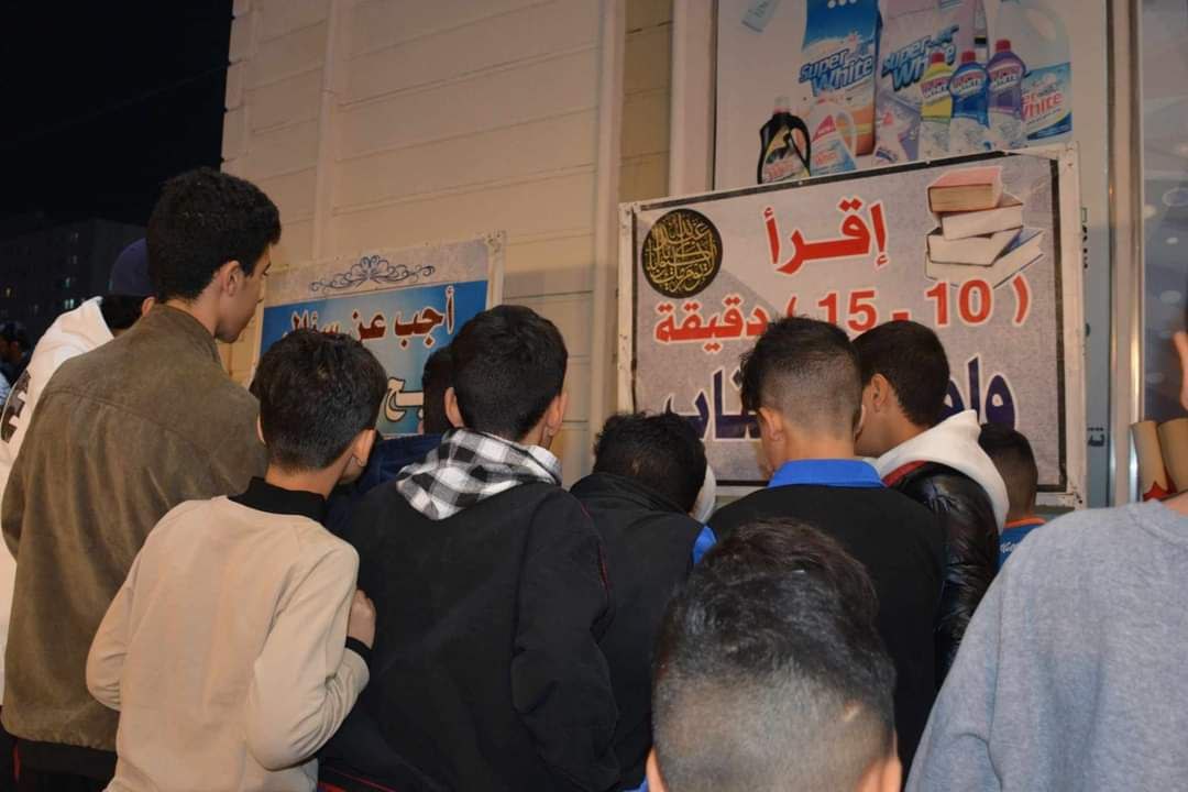 إقرأ عشر دقائق وامتلك الكتاب كهدية، صحح وضوئك وصلاتك، أجب عن سؤال وامتلك هدية، المرسم للطفل الصغير الهادف”، مضيفاً “الجدار الحر مكتوب عليه العبارات التالية، السؤال الأول/ماذا يعني لك مرور عام كامل من عمرك؟السؤال الثاني ماذا تعني لك السيدة الزهراء (عليها السلام)؟، السؤال الثالث ماذا يعني لك صاحب العصر والزمان (عج)؟”.