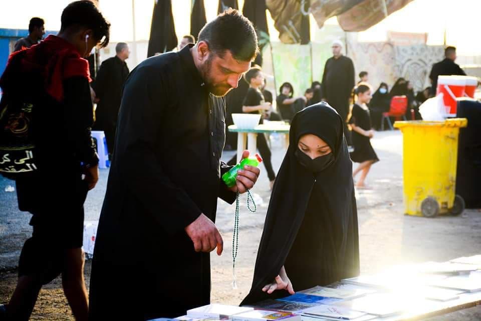 موكب الوعي في الديوانية يقدم الخدمات المعرفية والثقافية والشرعية لزوار الأربعينية (صور)