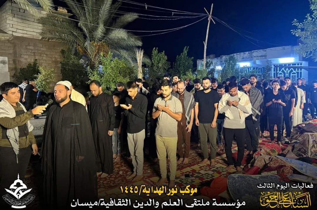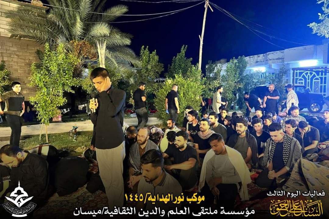 أعلن موكب نور الهداية التابع لمؤسسة ملتقى العلم والدين الثقافية في ميسان، اليوم الأربعاء، عن استمرار فعاليات اليوم الثالث من المسير الحسيني ١٤٤٥ هجري.