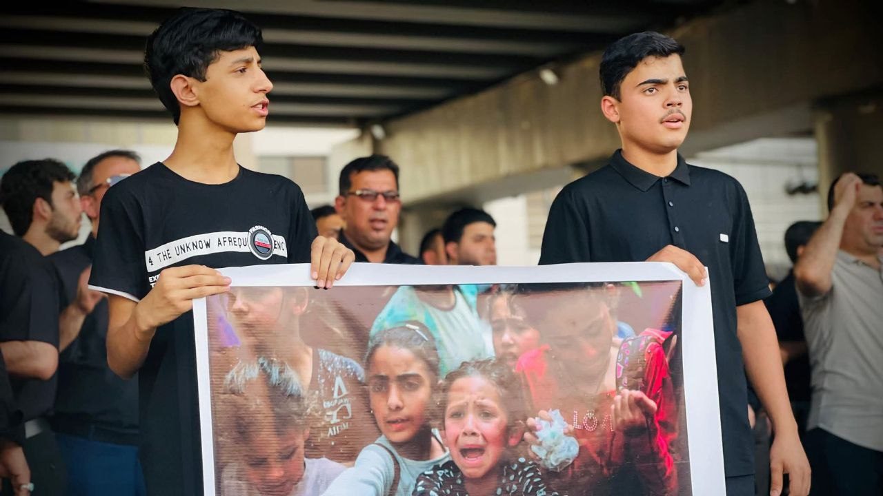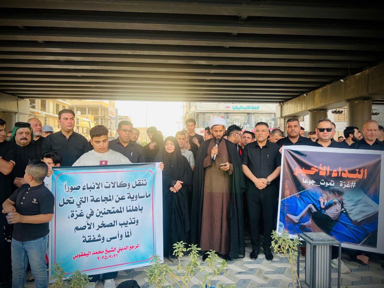 نظم أبناء المرجعية الدينية المتمثلة بسماحة المرجع الديني الشيخ محمد اليعقوبي في ميسان، اليوم الخميس، وقفة احتجاجية، تعبيراً عن تضامنهم مع أهلنا في قطاع غزة الذين يعانون من حصار خانق وظروف إنسانية صعبة، وصلت حدّ الجوع ونفاد المواد الأساسية.