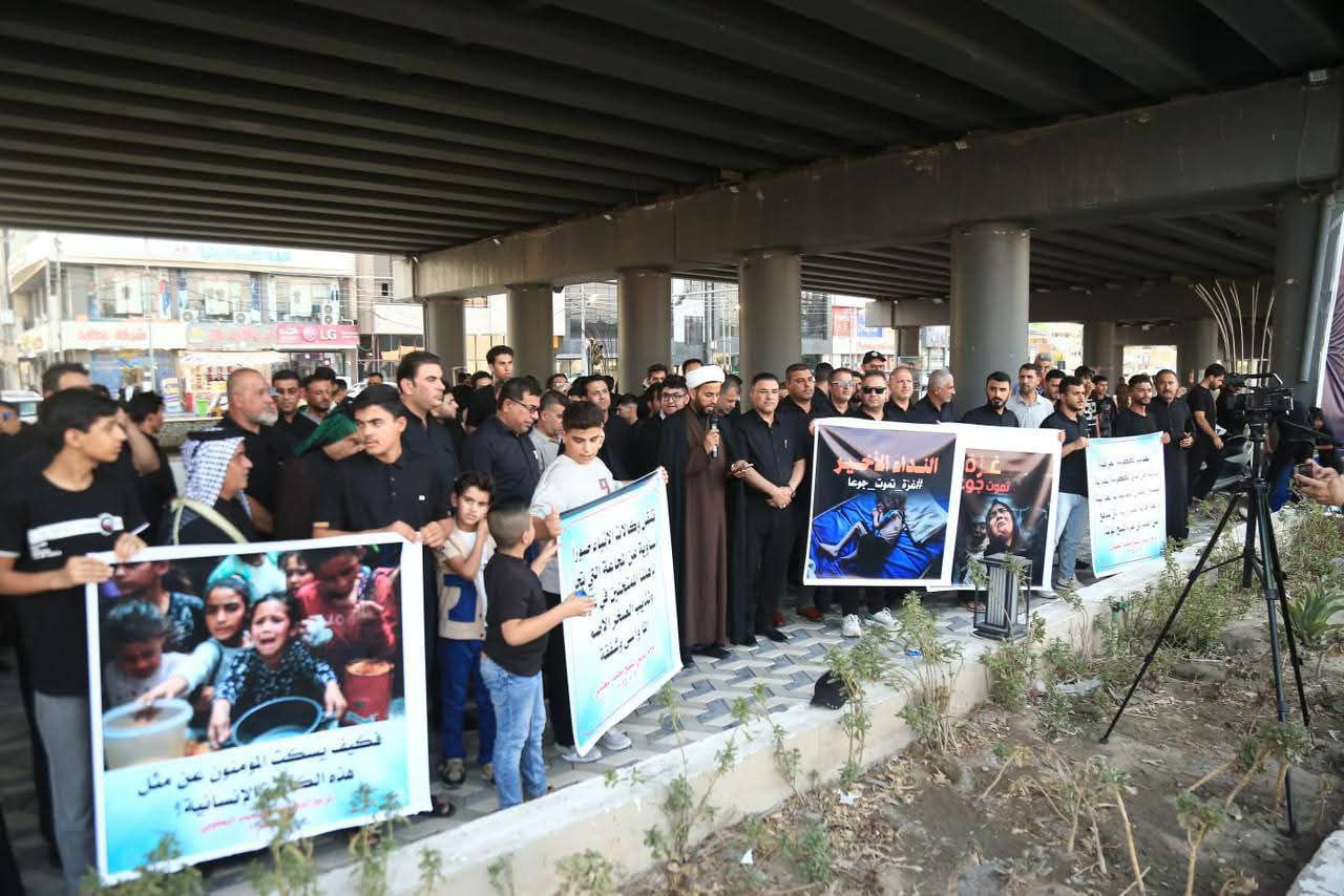 ميسان.. أبناء المرجعية يقيمون وقفة احتجاجية دعماً لغزة التي تعاني من الجوع (الفيديو+الصور)
