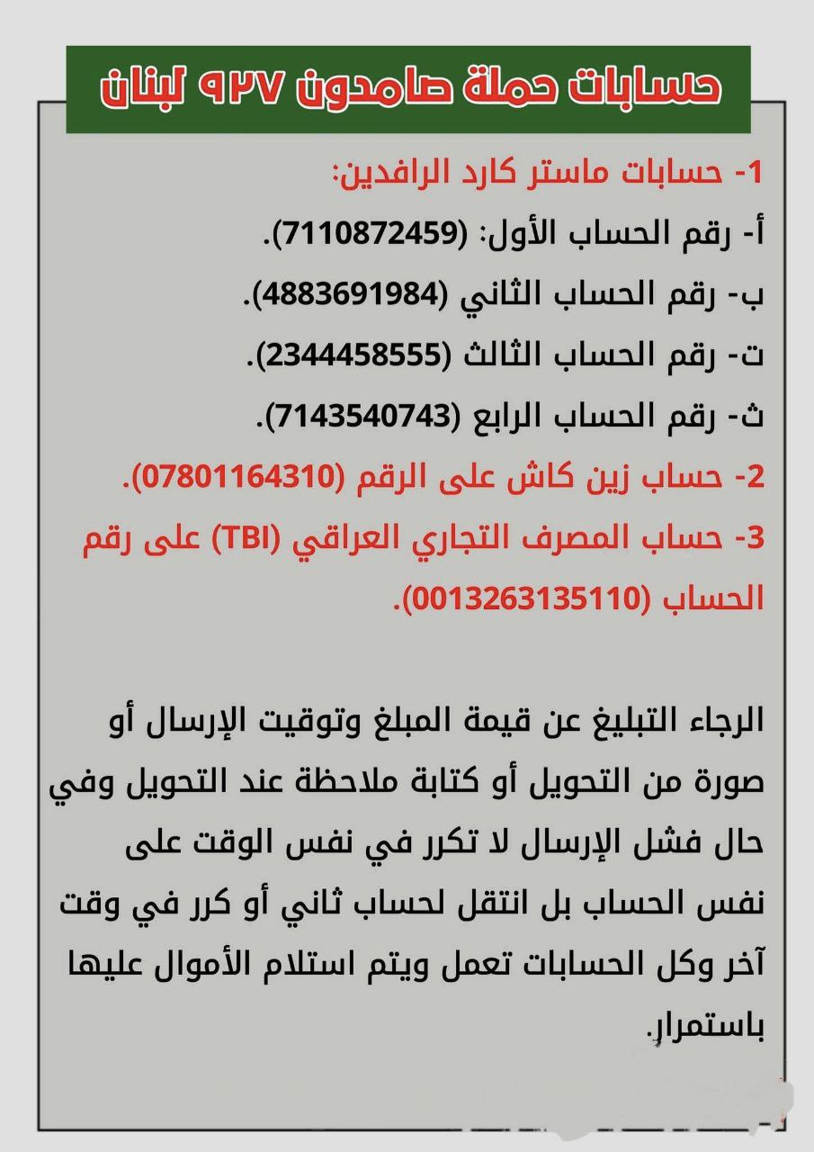 أعلن ناشطون ومدونون عراقيون، عن إطلاق حملة إنسانية تحمل اسم “صامدون لبنان 927″، تهدف إلى دعم عوائل الشهداء والجرحى والمهجّرين من جنوب لبنان، تزامناً مع ذكرى استشهاد السيد حسن نصر الله (رض).