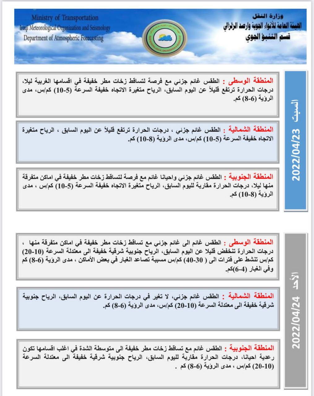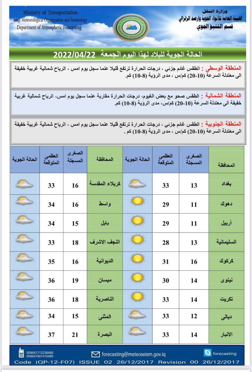 أعلنت هيئة الأنواء الجوية، اليوم الجمعة، عن حالة الطقس في البلاد للأيام المقبلة، فيما توقعت هطولاً للأمطار وانخفاضاً في درجات الحرارة.