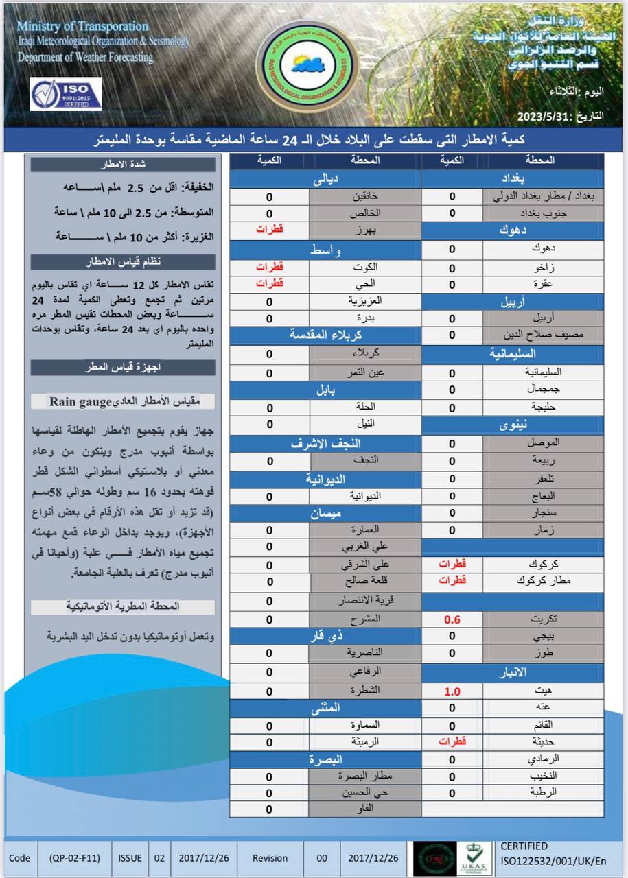 وتابع أن “طقس يوم السبت سيكون صحواً مع بعض الغيوم وتصاعد الغبار في المنطقتين الوسطى والجنوبية ، فيما سيكون الطقس في المنطقة الشمالية صحواً مع بعض الغيوم ، أما درجات الحرارة فسترتفع قليلاً عن اليوم السابق في الأقسام الوسطى والجنوبية، وترتفع بضع درجات عن اليوم السابق في القسم الشمالي من البلاد”.