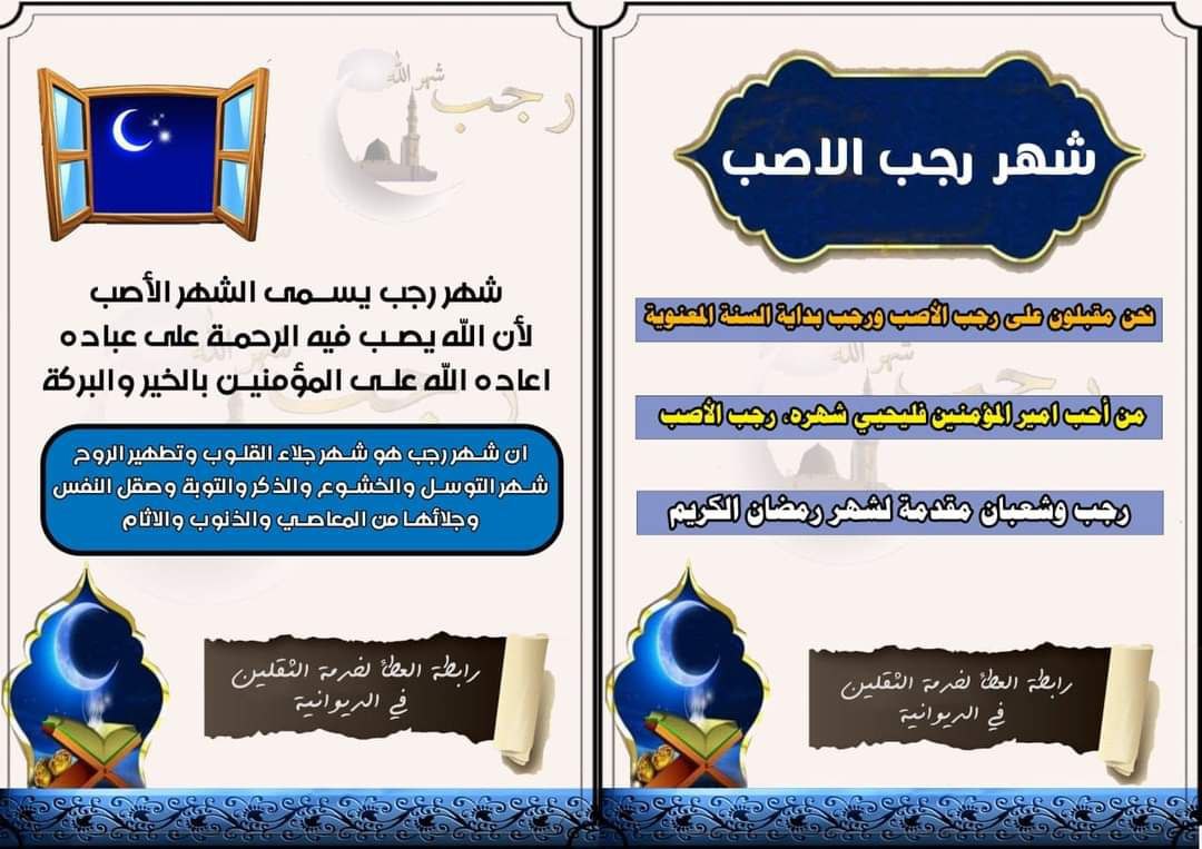قامت هيئة عشاق المبذوح في الديوانية بتوزيع فولدرات تحث الناس على الاستعداد لاستقبال شهر رجب الاصب في مرقد ابن الامام الكاظم (ع).