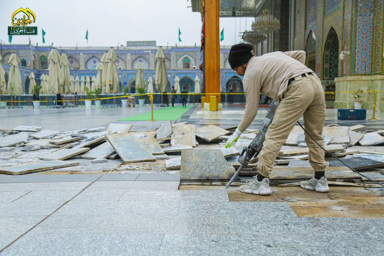 وتابعت، “وذلك لاحتياج المشهد الكاظمي إلى مد أنابيب الماء والصرف الصحي والقابلوات الكهربائية وخطوط الاتصالات وغيرها. وإعداداً لإكساء أرضية الصحن والأواوين بمرمر الثاسيوس عالي الجودة مشابه لمرمر الحرم المكي والحرم المدني”.